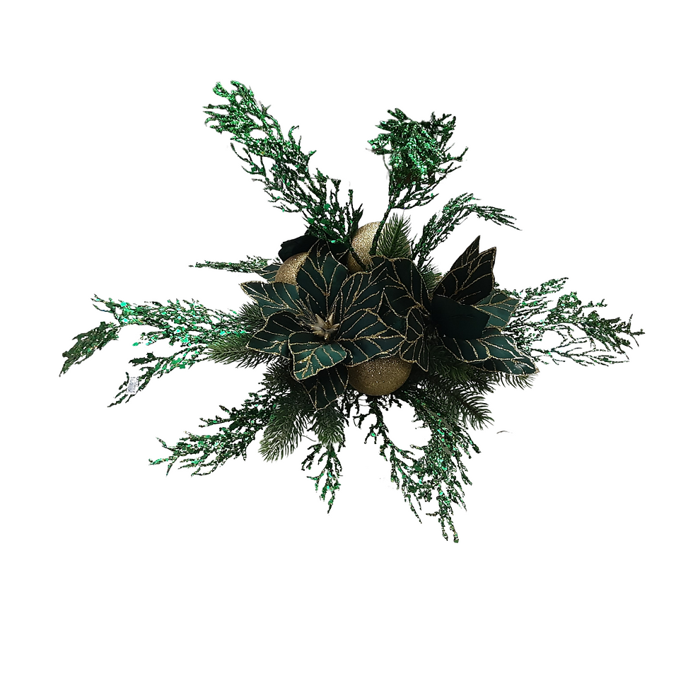 Arranjo de natal para centro de mesa dourado, vermelho e branco